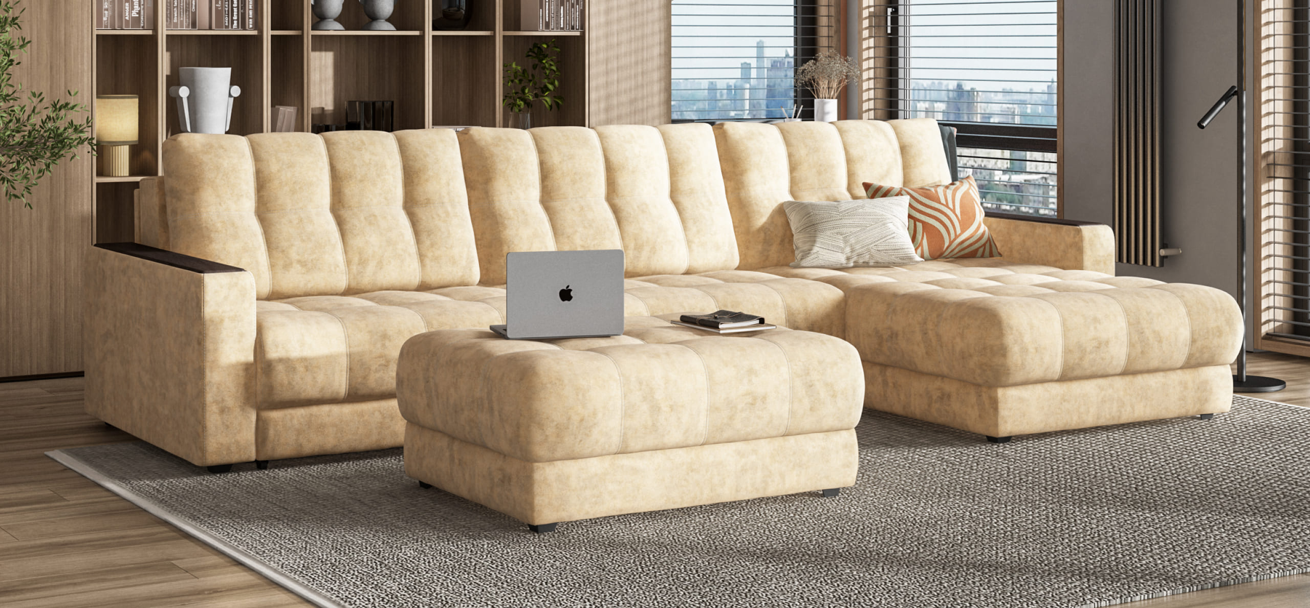 Угловой диван BOSS 3.0 MAX Велюр Роял шампань