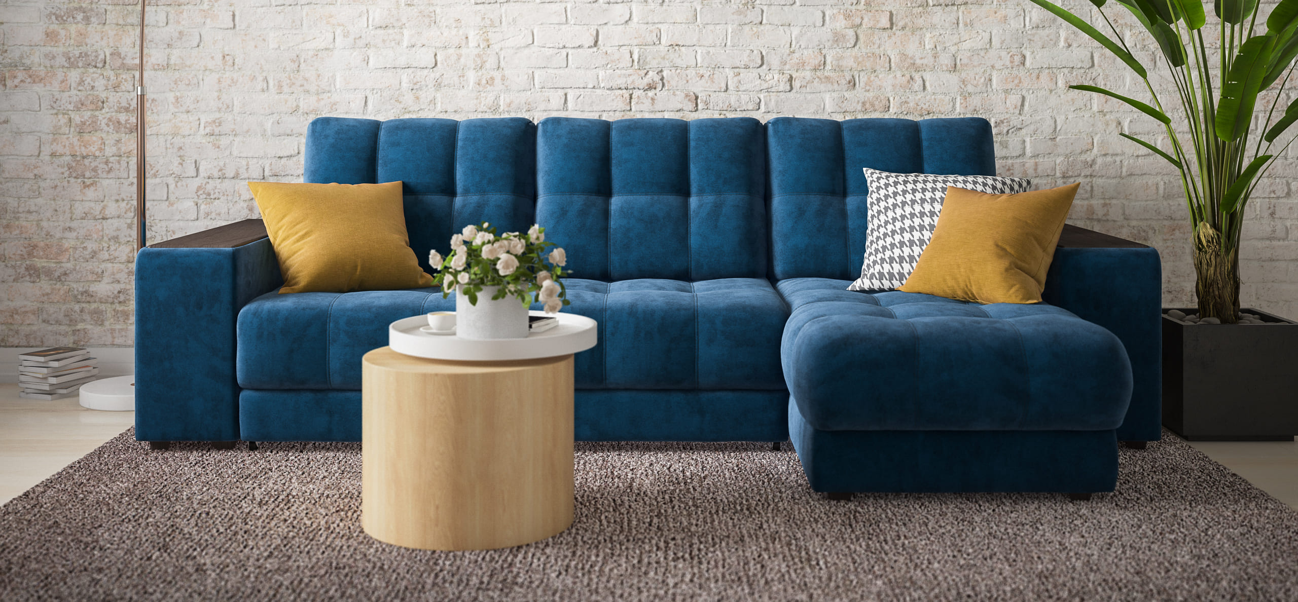 Угловой диван BOSS 3.0 XL велюр Monolit синий